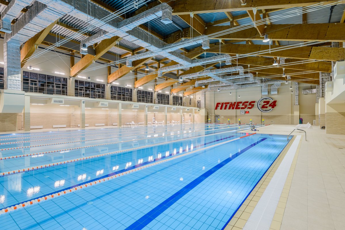 Преимущества: Шикарный 50метровый бассейн и большое пространство вокруг бассейна, огромное количество групповых тренировок, которые включены в абонемент, груглосуточный режим работы